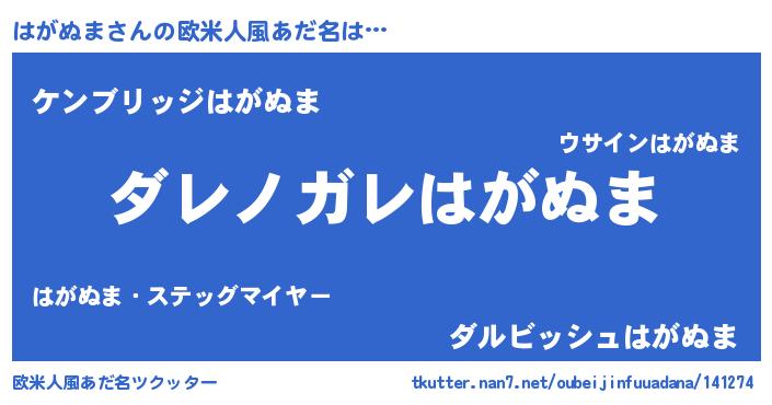 | ヒーロー風カッコイイあだ名 | 『仮面ハガダー』『超時空戦士ハガヌマ』 |