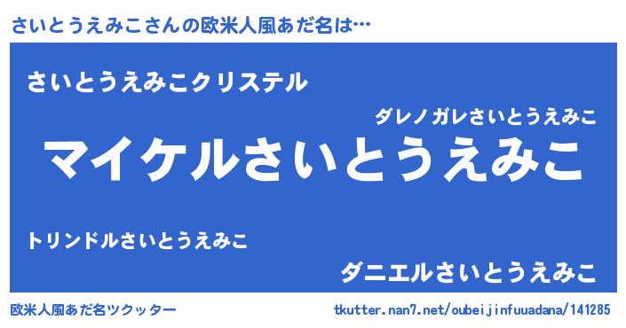 | 男性向けラノベタイトル風あだ名 | 『サイトウエミコアートオンライン』 |