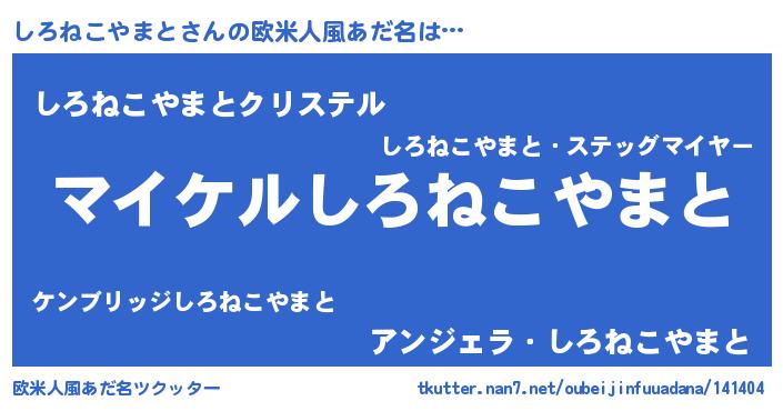| 男性向けラノベタイトル風あだ名 | 『しろねこやまとの憂鬱』 |