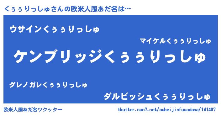 | 男性向けラノベタイトル風あだ名 | 『Re:くぅぅりっしゅから始める異世界生活』 |