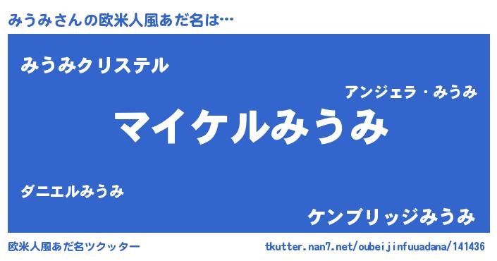 | 男性向けラノベタイトル風あだ名 | 『みうみの憂鬱』『魔法科高校のみうみ』 |