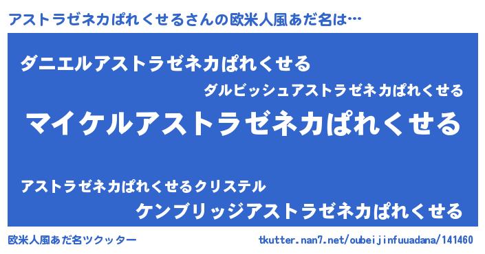 | 男性向けラノベタイトル風あだ名 | 『アストラゼネカぱれくせるの憂鬱』 |