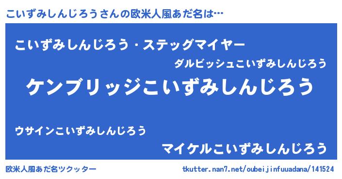 | 男性向けラノベタイトル風あだ名 | 『Re:こいずみしんじろうから始める異世界生活』 |