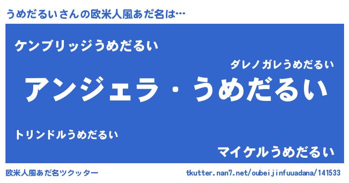 | 男性向けラノベタイトル風あだ名 | 『はたらくうめだるいさま!』 |