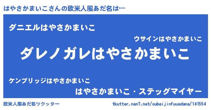 | 料理風あだ名 | 『はやさかまいこのカルパッチョ風』 |
