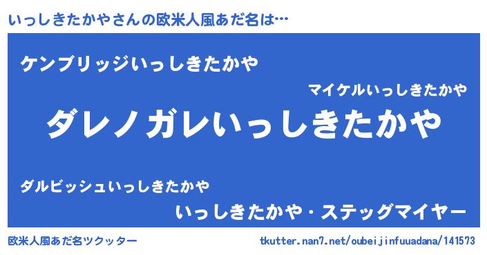 | 男性向けラノベタイトル風あだ名 | 『この素晴らしい世界にいっしきたかやを!』 |