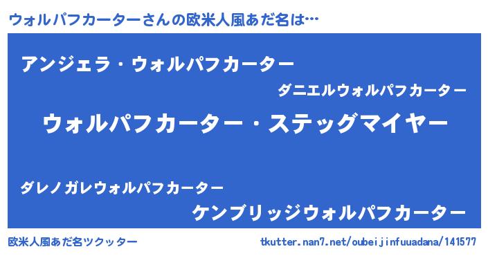 | 男性向けラノベタイトル風あだ名 | 『緋弾のウォルパフカーター』 |