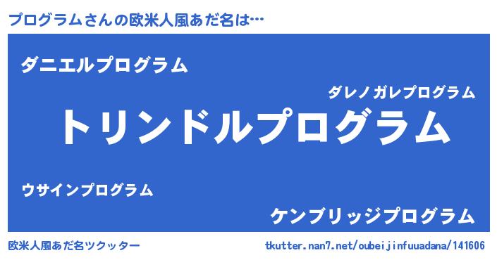 | 男性向けラノベタイトル風あだ名 | 『プログラム~年齢イコール彼女いない歴の魔法使い~』 |