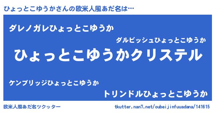 | 男性向けラノベタイトル風あだ名 | 『やはりひょっとこゆうかの青春ラブコメはまちがっている 』 |