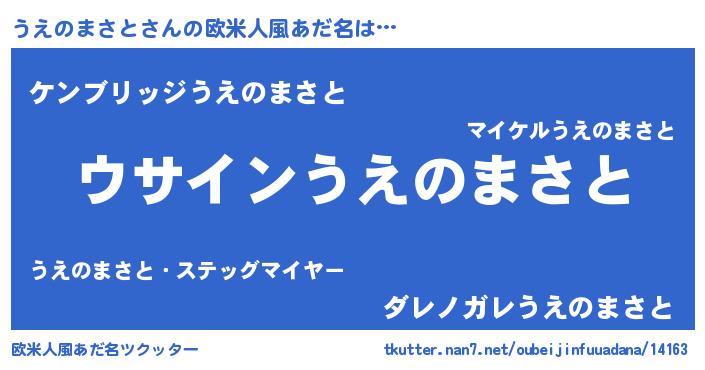 | 男性向けラノベタイトル風あだ名 | 『うえのまさとの嫁は女の子じゃないと思った?』 |