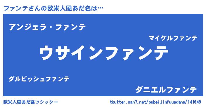 | 男性向けラノベタイトル風あだ名 | 『ファンテの嫁は女の子じゃないと思った?』 |