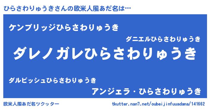| 男性向けラノベタイトル風あだ名 | 『この素晴らしい世界にひらさわりゅうきを!』 |