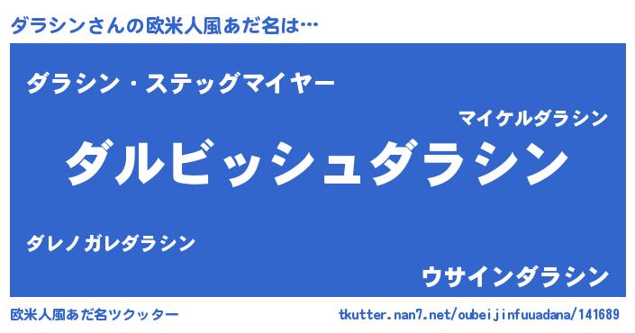 | 男性向けラノベタイトル風あだ名 | 『ダラシンという概念が存在しない退屈な世界 』 |