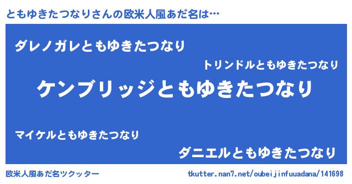 | 女子向けラノベタイトル風あだ名 | 『ともゆきたつなりなんてお断りですっ。』 |