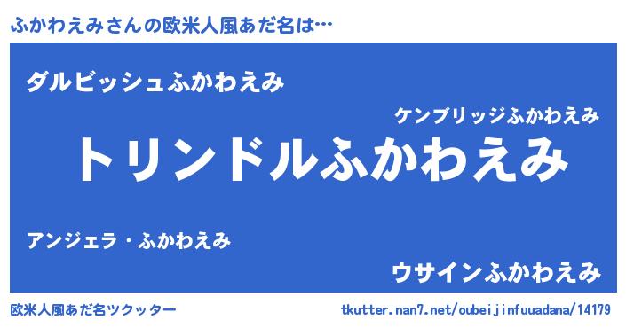 | ヘコむあだ名 | 『ふかわえみ(笑)』『ふか太郎』 |