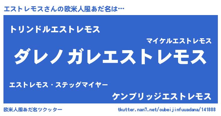 | 女子向けラノベタイトル風あだ名 | 『エストレモスが死なない童話 林檎のエストレモスの診療簿』 |