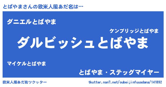 | 男性向けラノベタイトル風あだ名 | 『とばやまという概念が存在しない退屈な世界 』 |