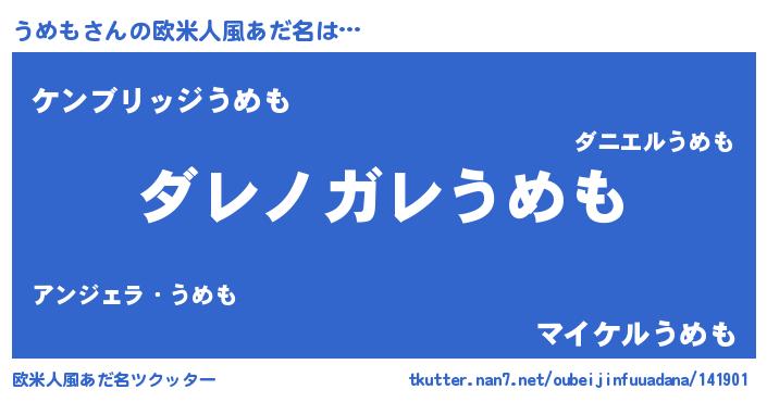 | 意味不明あだ名 | 『住所不定無職うめも(85歳)』『自称うめも』 |