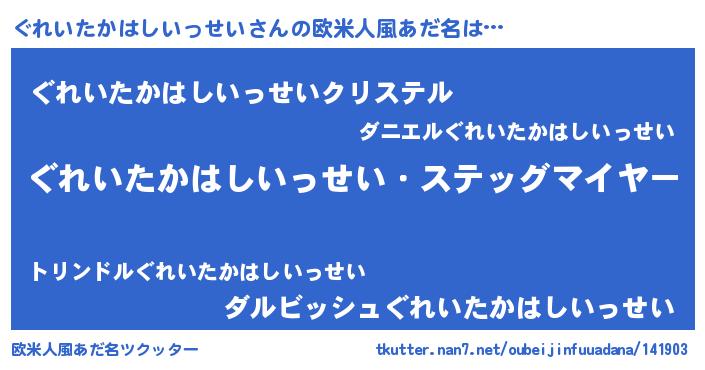 | 意味不明あだ名 | 『ぐれいたかはしいっせいフォーエバー』 |