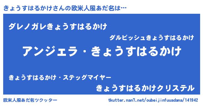 | 男性向けラノベタイトル風あだ名 | 『きょうすはるかけに滅ぼされるだけの簡単なお仕事です』 |