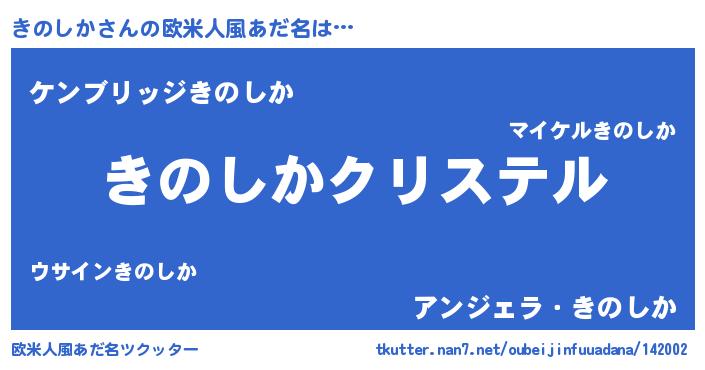 | ヒーロー風カッコイイあだ名 | 『ウルトラきのしかマン』『黄金騎士キノ』 |