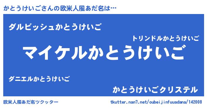 | 男性向けラノベタイトル風あだ名 | 『カトウケイゴアートオンライン』 |