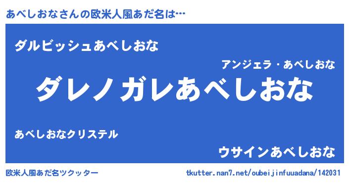| 女子向けラノベタイトル風あだ名 | 『乙女ゲームの破滅フラグしかない悪役あべしおなに転生してしまった…』 |