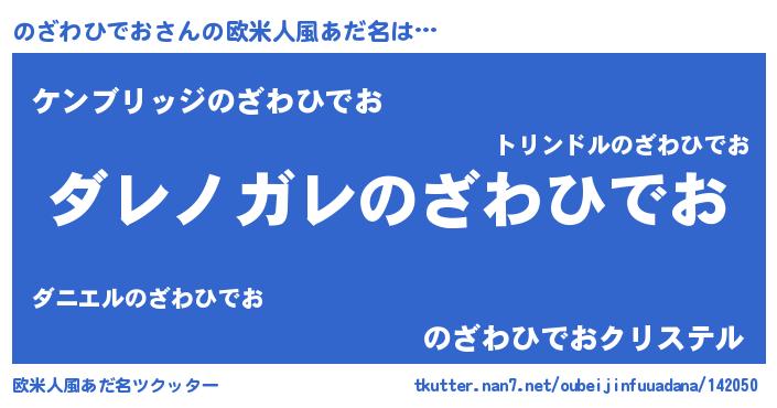 | 男性向けラノベタイトル風あだ名 | 『この素晴らしい世界にのざわひでおを!』 |
