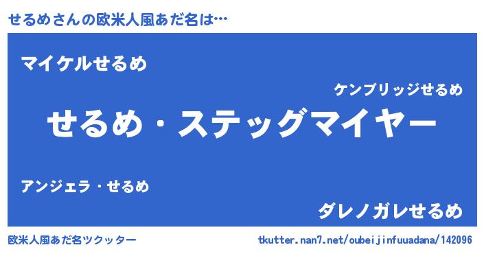 | 男性向けラノベタイトル風あだ名 | 『うちのせるめが世界を掌握している!』 |