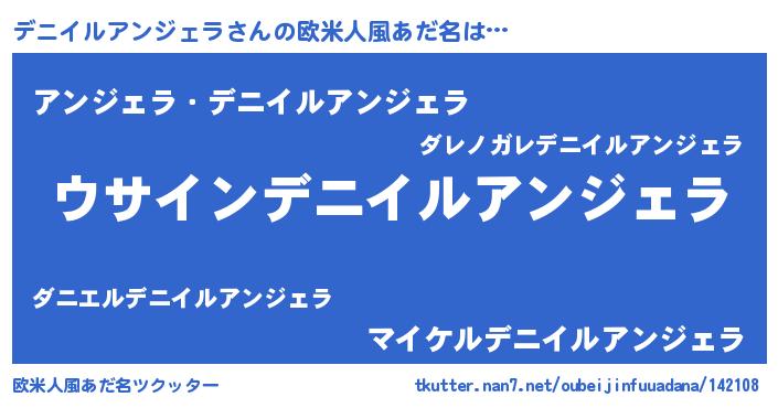 | 男性向けラノベタイトル風あだ名 | 『デニイルアンジェラの嫁は女の子じゃないと思った?』 |