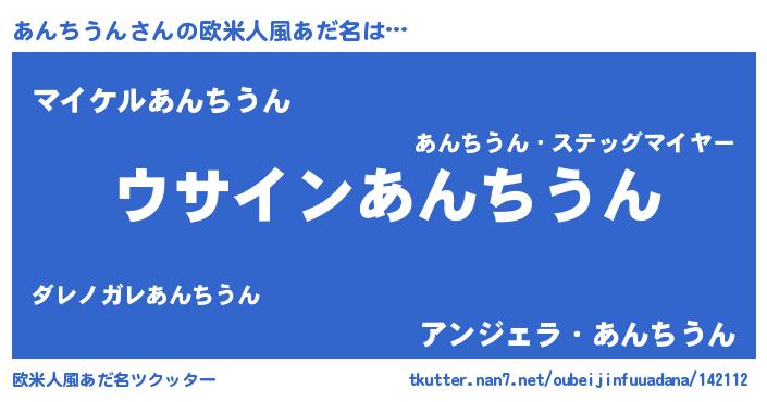 | 男性向けラノベタイトル風あだ名 | 『あんちうんの嫁は女の子じゃないと思った?』 |