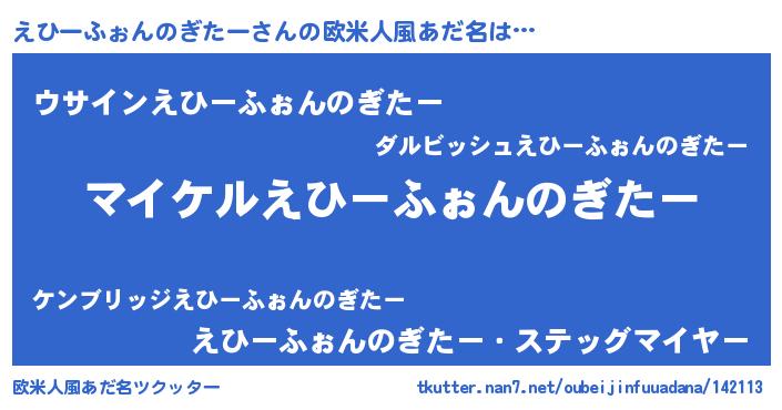 | 男性向けラノベタイトル風あだ名 | 『えひーふぉんのぎたーの憂鬱』 |