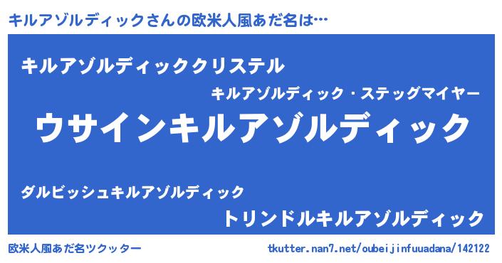 | ピコ太郎風あだ名 | 『キル次郎』『ピキ二郎』『ピコキ郎』 |