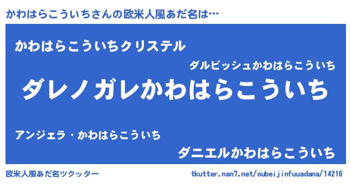 | 男性向けラノベタイトル風あだ名 | 『魔弾の王とかわはらこういち』 |