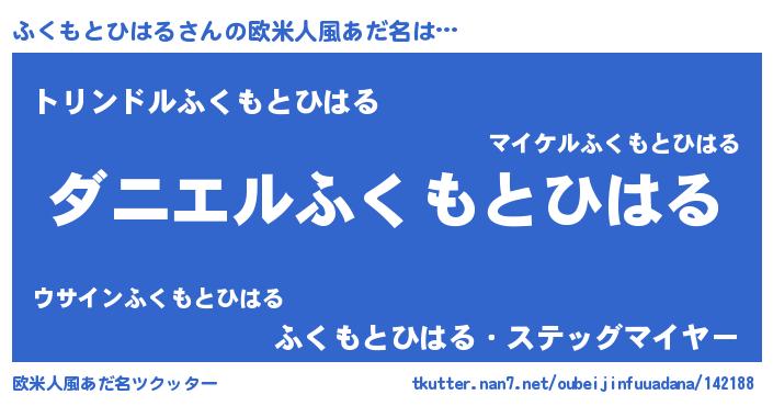 | 男性向けラノベタイトル風あだ名 | 『ノーゲーム・ノーフクモトヒハル』 |