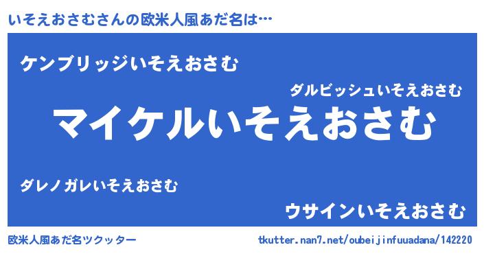 | 男性向けラノベタイトル風あだ名 | 『いそえおさむの憂鬱』 |