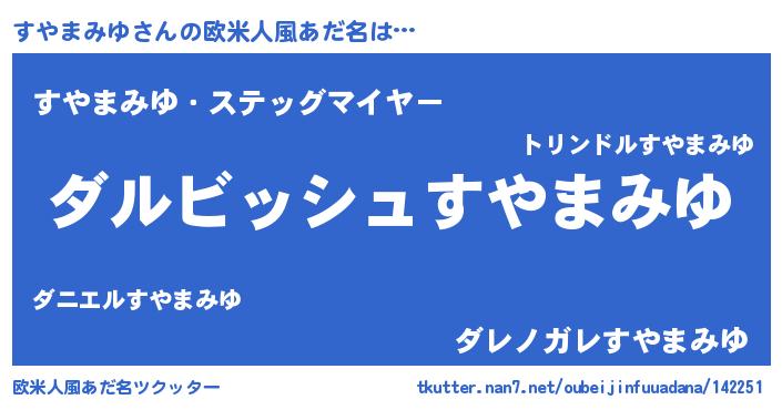 | ヘコむあだ名 | 『すやまみゆ(遠い目)』『なまこ酢』 |