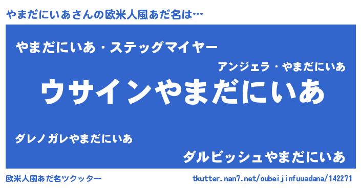 | 男性向けラノベタイトル風あだ名 | 『やまだにいあの嫁は女の子じゃないと思った?』 |