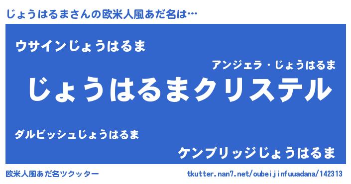 | 女子向けラノベタイトル風あだ名 | 『じょうはるまの雑貨屋さん』 |