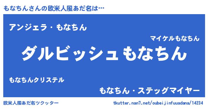 | 女子向けラノベタイトル風あだ名 | 『異世界で失敗しない100のもなちん』 |