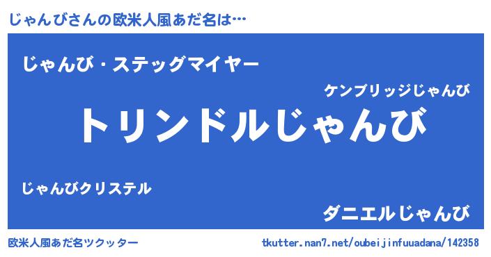 | 男性向けラノベタイトル風あだ名 | 『じゃんび~年齢イコール彼女いない歴の魔法使い~』 |