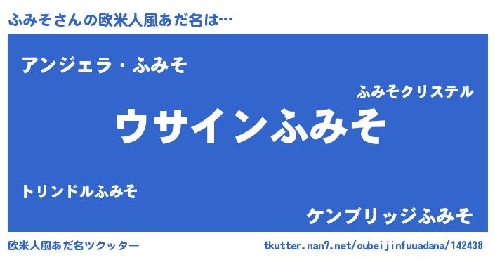 | 男性向けラノベタイトル風あだ名 | 『ふみその嫁は女の子じゃないと思った?』 |