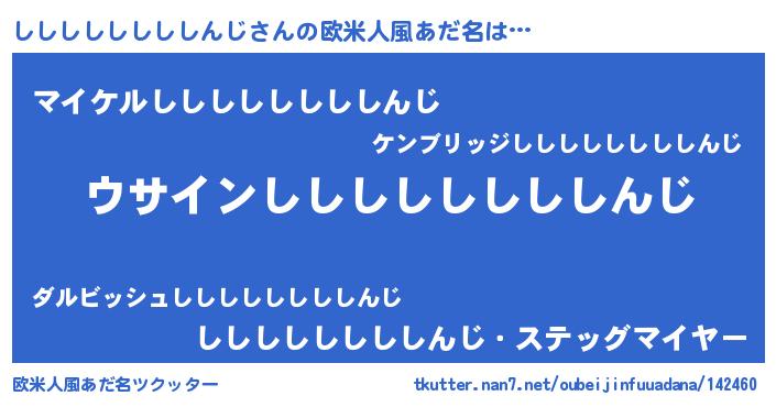 | 胡散臭い通販商品みたいなあだ名 | 『信頼と実績のサプリメント…その名も「ししししししししんじ」』 |