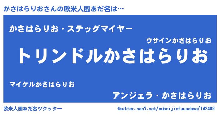 | 胡散臭い通販商品みたいなあだ名 | 『信頼と実績のサプリメント…その名も「かさはらりお」』 |