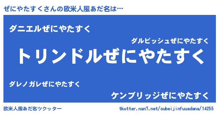 | 男性向けラノベタイトル風あだ名 | 『ゼニヤタスクスレイヤー』 |