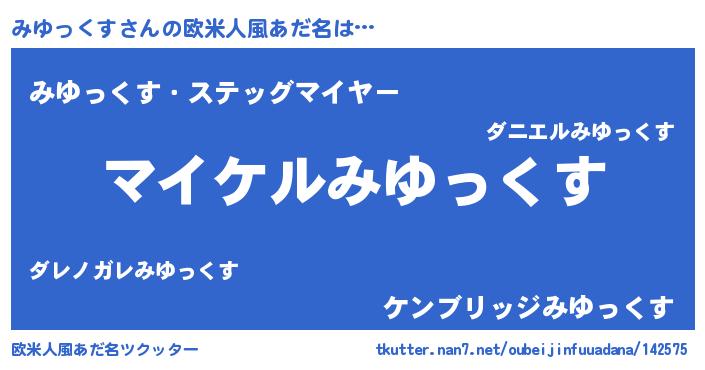 | 男性向けラノベタイトル風あだ名 | 『みゆっくすの憂鬱』 |