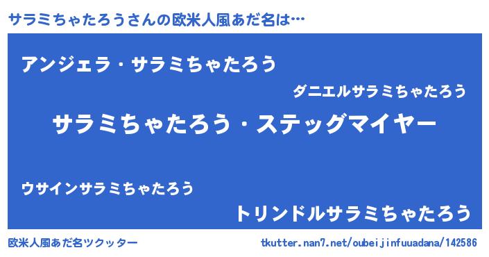 | 男性向けラノベタイトル風あだ名 | 『うちのサラミちゃたろうが世界を掌握している!』 |