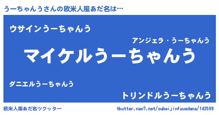 | 女子向けラノベタイトル風あだ名 | 『うーちゃんう姫と円卓の騎士』 |