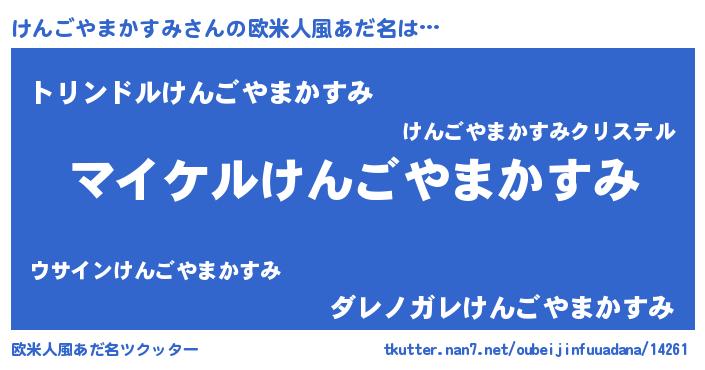 | 男性向けラノベタイトル風あだ名 | 『けんごやまかすみの憂鬱』 |