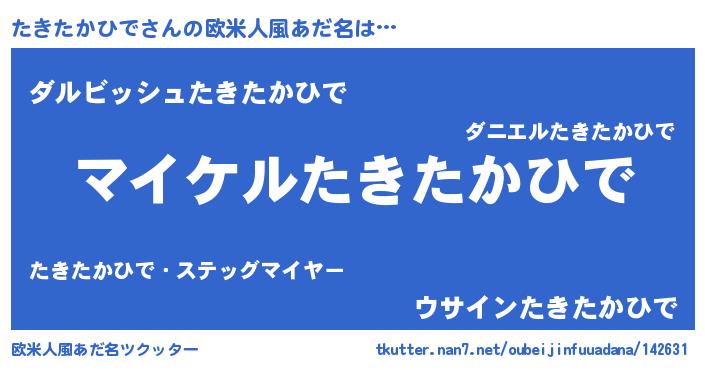 | 男性向けラノベタイトル風あだ名 | 『たきたかひでの憂鬱』 |